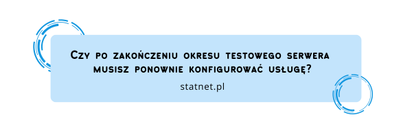 Podczas trwania okresu testowego konfigurujesz serwer dokładnie tak, jak w przypadku usługi komercyjnej. Instalujesz aplikacje, tworzysz konta e-mail, konfigurujesz bazy danych oraz wdrażasz stronę internetową. Po zakończeniu testów nie tracisz wprowadzonych ustawień ani danych. Aby zachować ciągłość działania, wystarczy opłacić usługę zgodnie ze stawką podaną w panelu klienta.