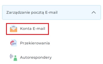 - Przejdź do Zarządzanie pocztą e-mail -> Konta e-mail