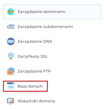 - W panelu w sekcji Zarządzanie kontami wybierz Bazy danych